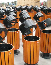 欣方圳鋼木垃圾桶,園林景區環境提升的好助手