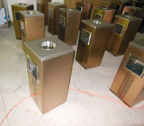 今天,廣州從化區的多喝湯餐廳,為了解決餐廳室內不銹鋼垃圾桶問題就找到了我司欣方圳,為他推薦符合餐廳里的室內不銹鋼垃圾桶。為此,市場部推廣人員挑了數十款,專門用于室內不銹鋼垃圾桶的圖片提供給廣州市天河多喝湯餐廳選擇。數十款精品室內不銹鋼垃圾桶,看得客戶眼花繚亂,不知所措。最終挑選了一款很接近多喝湯餐廳顏色的室內不銹鋼垃圾桶。