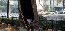 10月16日,南京,中山東路人行道邊上,一顆法國梧桐的樹干里滿是行人隨手丟棄的各式的垃圾,有香煙頭、果皮、紙杯、飲料水瓶等等,樹洞簡直成了“垃圾桶&rd...