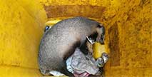 瀕危“狗獾”被困垃圾桶