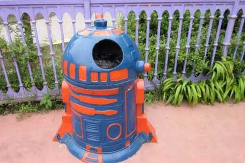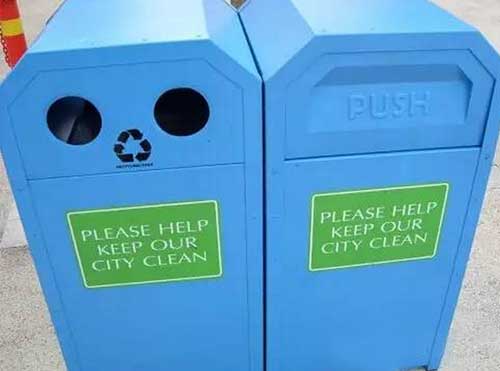 另外,還有熒光垃圾桶,垃圾桶有關門的液晶顯示熒光裝置,晚上發光時可讓人們清楚看到垃圾桶的位置,也方便清潔工人查看垃圾桶內的垃圾量。
