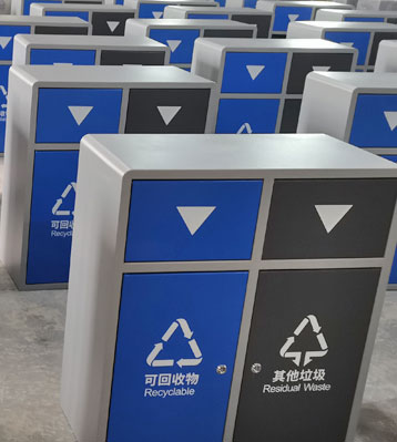 F139戶外鋼板四分類垃圾桶