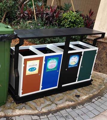 • 產(chǎn)品名稱:鋼板四分類垃圾桶